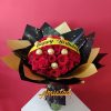 Caja corazón con 24 rosas, 8 ferreros, tapa personalizada y moño.